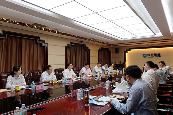 5月19日,兗州區委副書記、區長王營一行到經典集團調研生產經營和項目建設有關情況。兗州區政協副主席、工業園區黨工委書記、管委會主任郭玉清,經典集團董事長苗樹文,總經理杜福生等陪同調研。
