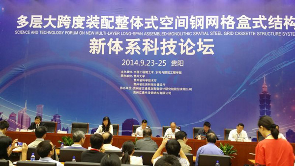 9月24至25日,由中國工程院土木、水利與建筑工程學部主辦,貴州大學貴州省科技廳貴州省住建廳等承辦的“多層大跨度裝配整體式空間鋼網格盒式結構新體系科技論壇”在貴陽開幕,論壇邀請中國工程院周豐峻院士、杜彥良院士、肖緒文院士、郭仁忠院士以及中國工程院土木、水利與建筑工程學部學術委員和來自國內各知名高校、科研院所、設計院、鋼結構行業知名企業二百余人參加,經過現場考察、主題報告、學術交流研討,形成對中國工程院士馬克儉“盒式結構新體系”的論證意見。意見認為:該體系以“產、學、研”結合方式進行科學技術成果的研發與轉化,是理論與實踐相結合的良好形式,是落實“實施創新驅動發展戰略”的有效舉措。該項目取得了良好的社會經濟環境效益,有良好的推廣應用前景,經典集團董事長苗樹文應邀參加“盒式結構新體系”研討,并與馬克儉肖緒文等院士互動學習交流,并觀摩了中國南車集團貴陽新產業基地大自然工業園芯料生產廠房、貴州省博物館新館等“盒式結構新體系”應用示范單位。