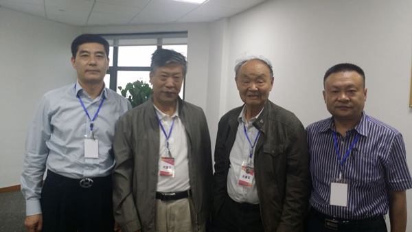 中國工程院馬克儉院士(右二),肖緒文院士(左二),山東建筑大學周學軍院長(右一)與董事長苗樹文(左一)合影