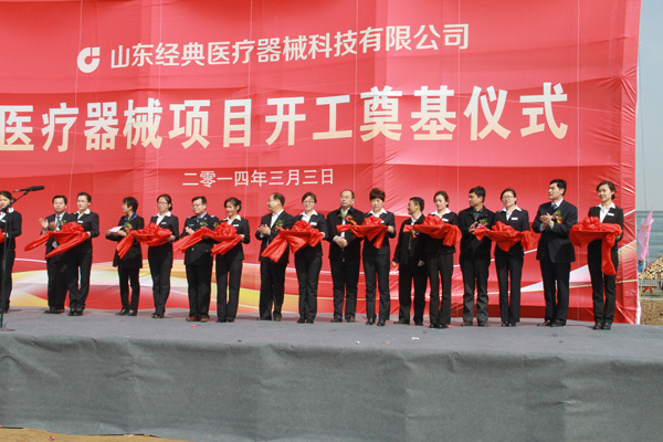 3月3日上午,經典集團隆重舉辦年產10萬臺高端醫療器械項目開工奠基儀式。區委常委、兗州工業園區黨工委副書記、管委會副主任唐軍,區經濟和信息化局局長、醫藥產業園建設指揮部副指揮韓春恒,兗州工業園區副主任王天祥,新兗鎮黨委書記張建芬,區食品藥品監督管理局副局長邱培強,兗州工業園區經濟發展局副局長閆慶章,經典集團董事長苗樹文,總經理杜福生,經典醫療器械科技有限公司負責人高建國,項目施工方負責人姜玉寶出席了開工奠基儀式。