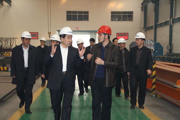 馬平昌等領導深入車間,參觀了生產現場,詳細詢問企業生產經營情況,對我公司鋼結構生產技術水平和創新能力給予了充分肯定,并對當前企業發展問題進行溝通交流。馬平昌希望我公司進一步加大科技投入和研發力度,不斷提升自主創新能力,增強核心競爭力。在市場經濟的大潮中不斷展示新活力、取得新成績。