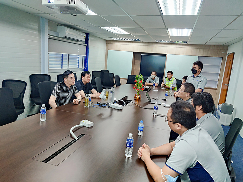 中國京冶建設工程(新加坡)有限公司執(zhí)行副總裁許亞男,執(zhí)行副總裁陳曉冬,鋼結(jié)構(gòu)高級運營經(jīng)理翟東,鋼結(jié)構(gòu)運營副經(jīng)理胡明陪同參觀座談。
