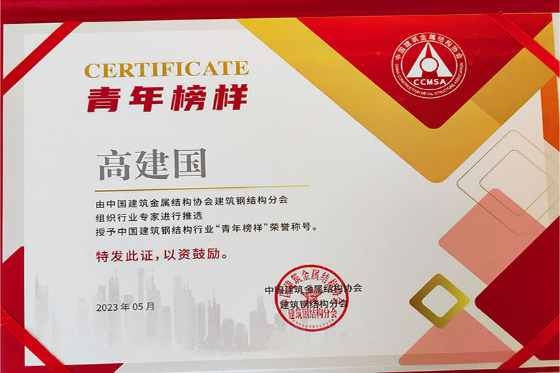 高建國同志榮獲中國建筑鋼結構行業青年榜樣稱號