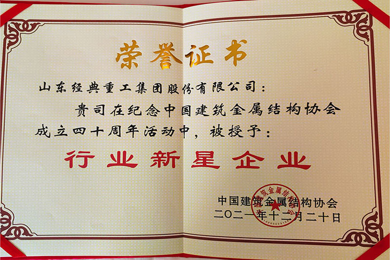 公司榮獲中國建筑金屬結構協會行業新星企業稱號