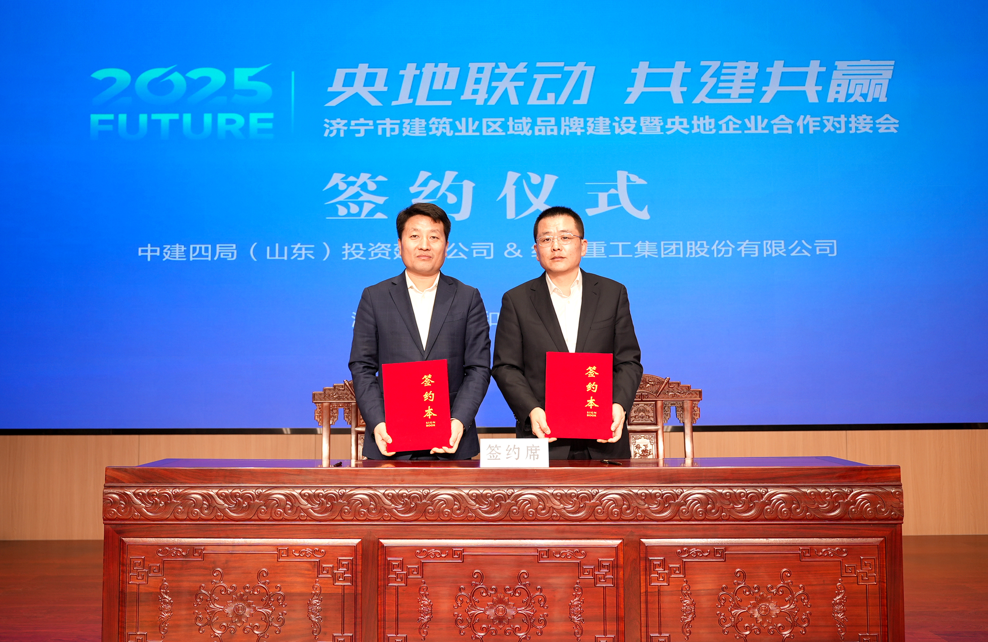 會上,中建四局投資建設公司與經典集團、中鐵十一局與美達源集團、中電建路橋與山東中煤建設、中建八局一公司與山東寧大集團簽署合作協議,開啟了央地企業優勢互補、共贏發展的新篇章。